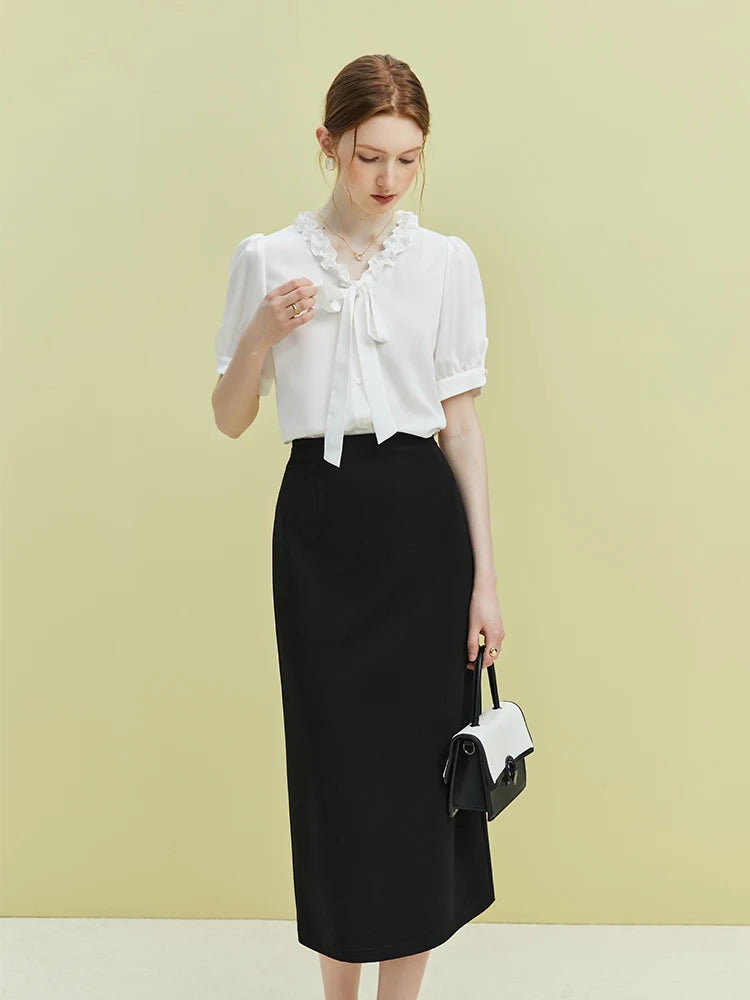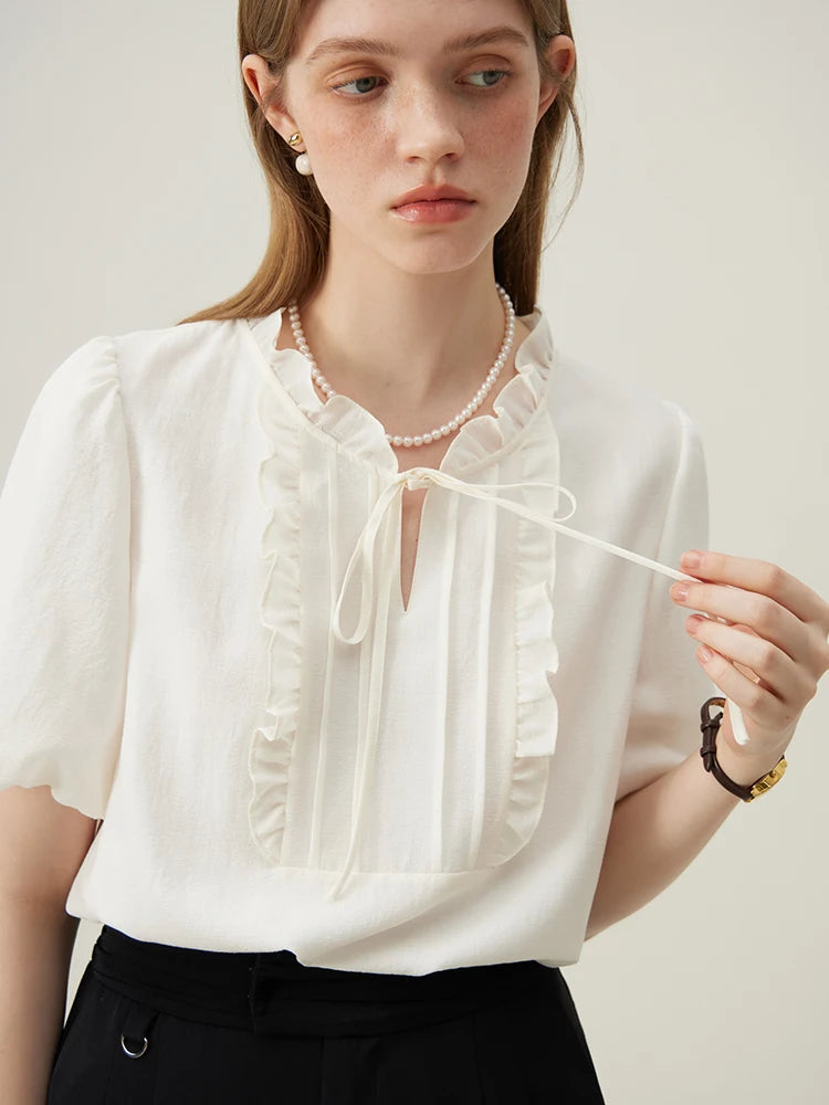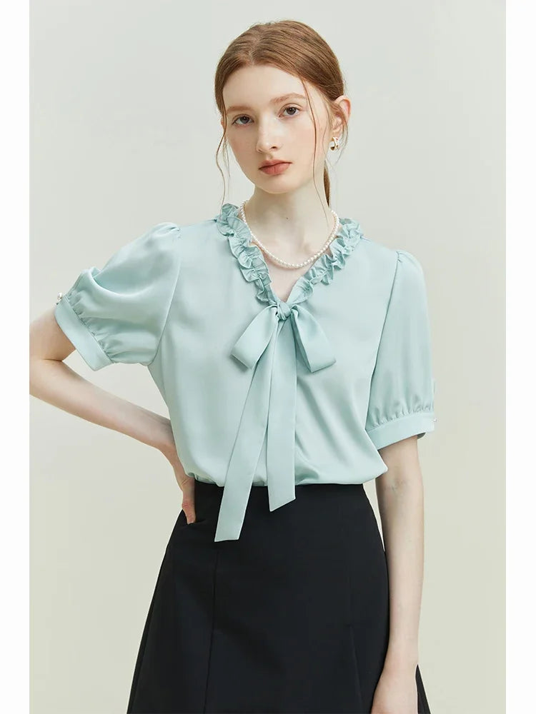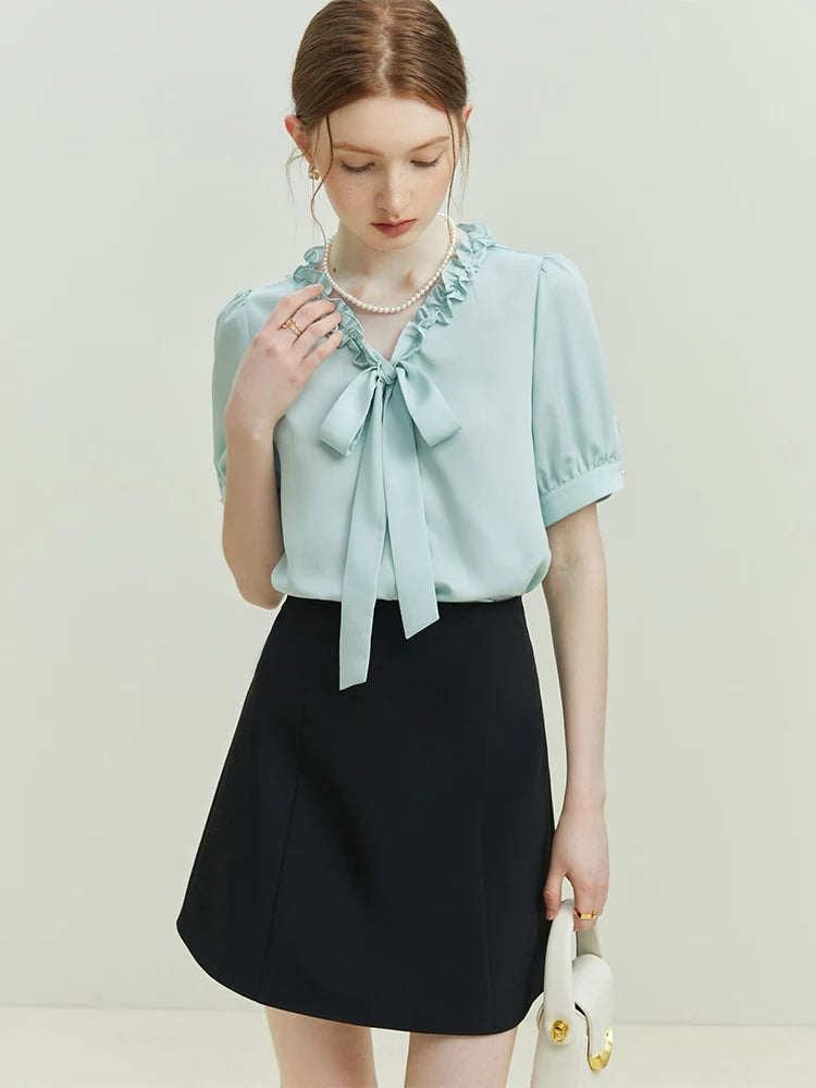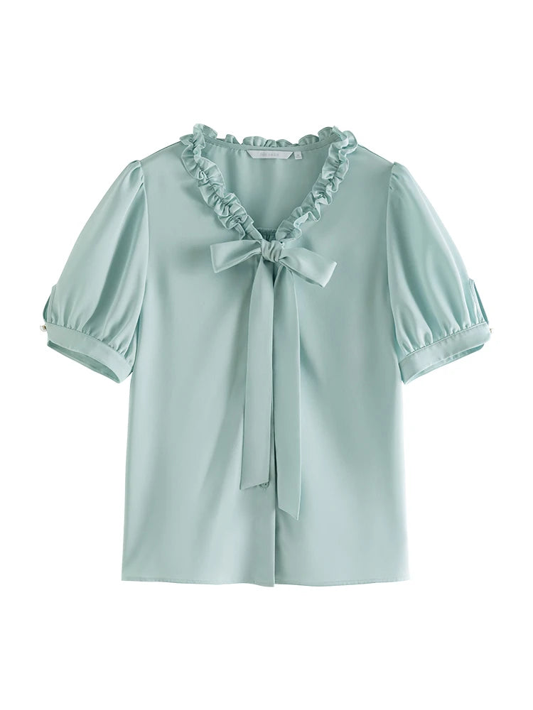 French V-neck bow shirt with ruffle trimSale price Dhs. 149.68Regular price Dhs. 367.88You saved 59% OFF