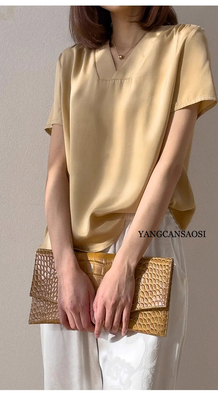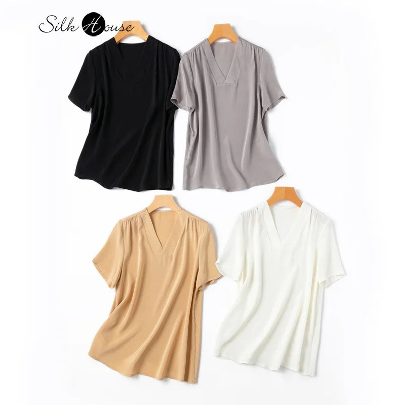 Mulberry silk V-neck short-sleeve T-shirtSale price Dhs. 264.88Regular price Dhs. 423.81You saved 37% OFF