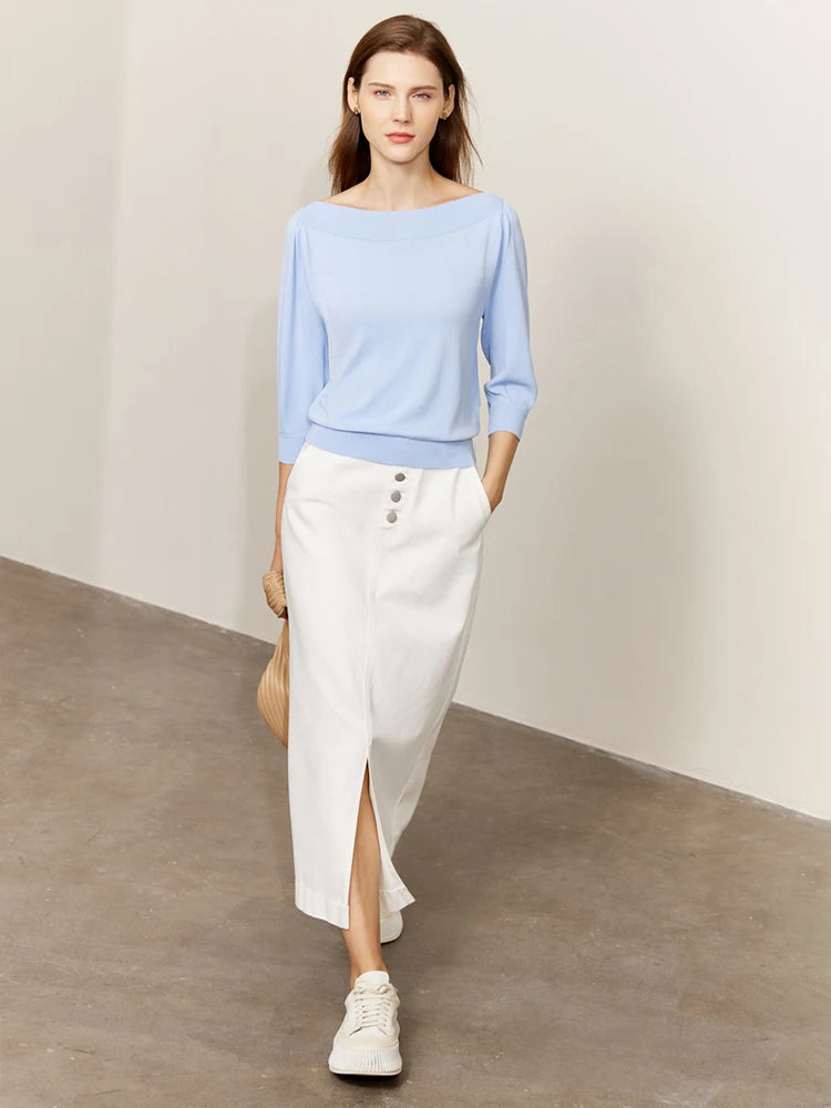 Minimalist slash neck short-sleeve knitted topSale price Dhs. 273.82Regular price Dhs. 369.66You saved 25% OFF