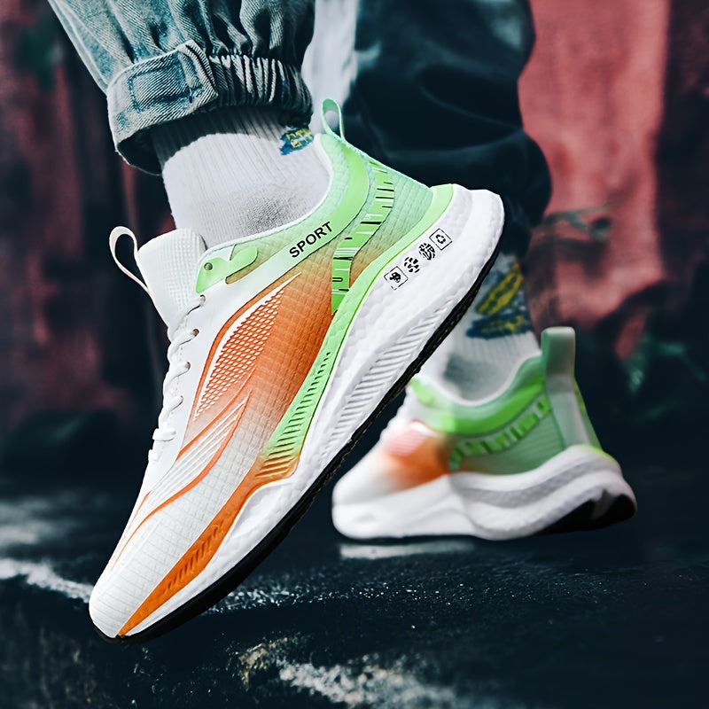 Men's Gradient Color Trendy Lace Up Sneakers For All Seasons Outdoor Running Workout