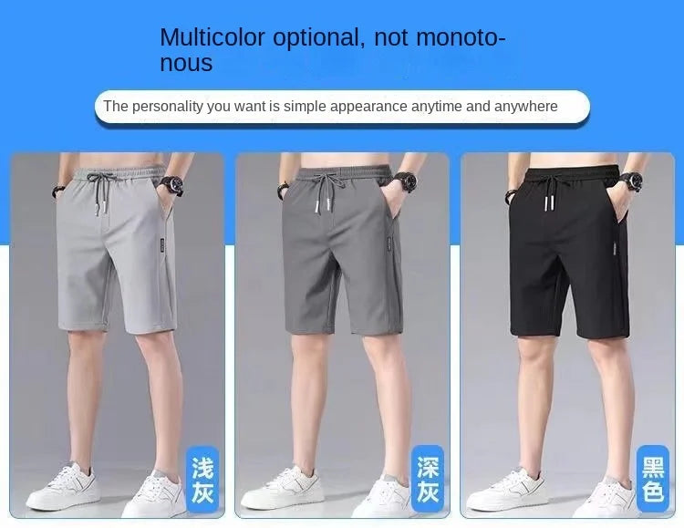 Decrease quantity for Summer Thin Ice Silk Casual Shorts Men Basketball Quarterback Pants American Trendy Brand Loose Fitting Versatile Pants
