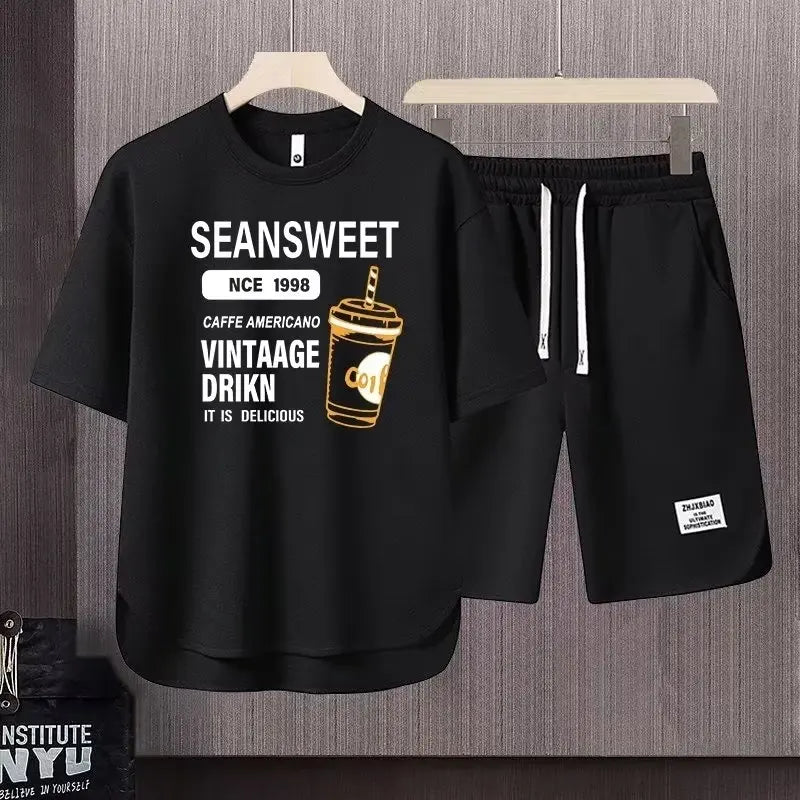 Men Clothing Tracksuit Sets Harajuku Fashion Joggers Tracksuit Men 2 Piece Set Casual Short Sleeve T Shirts+Shorts