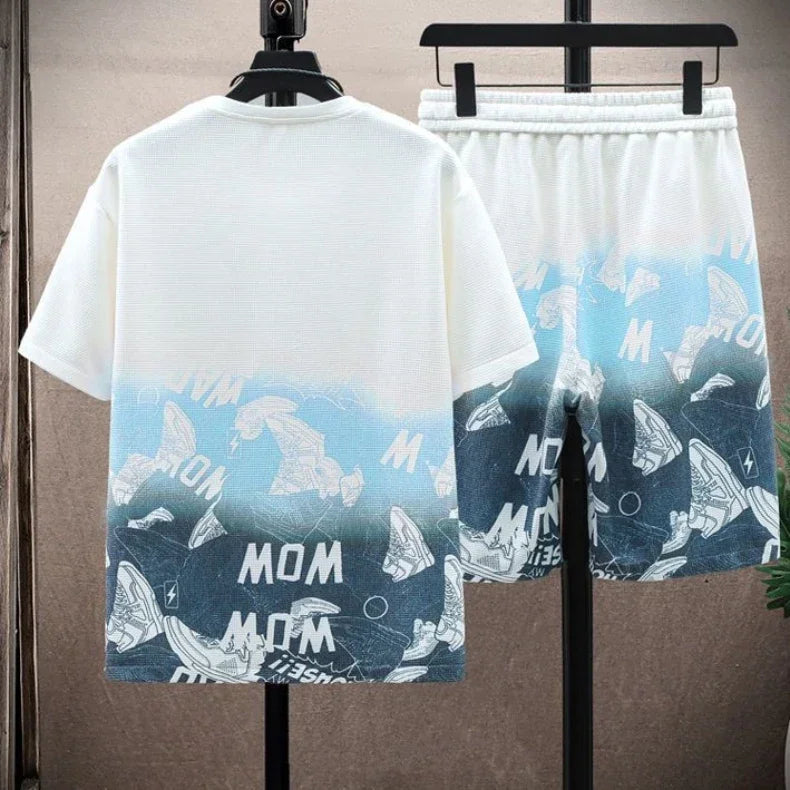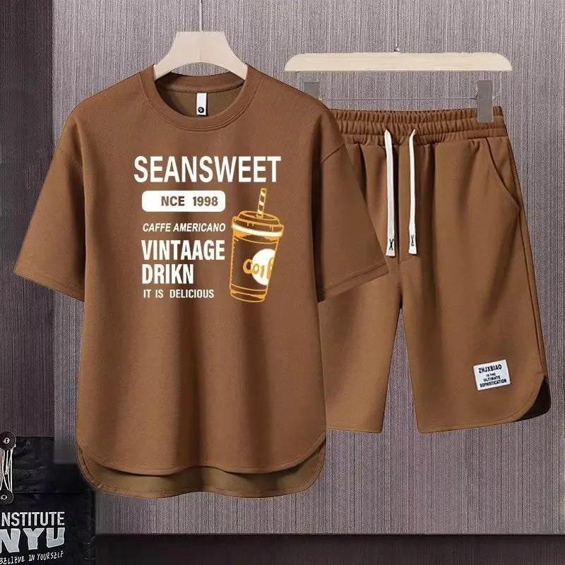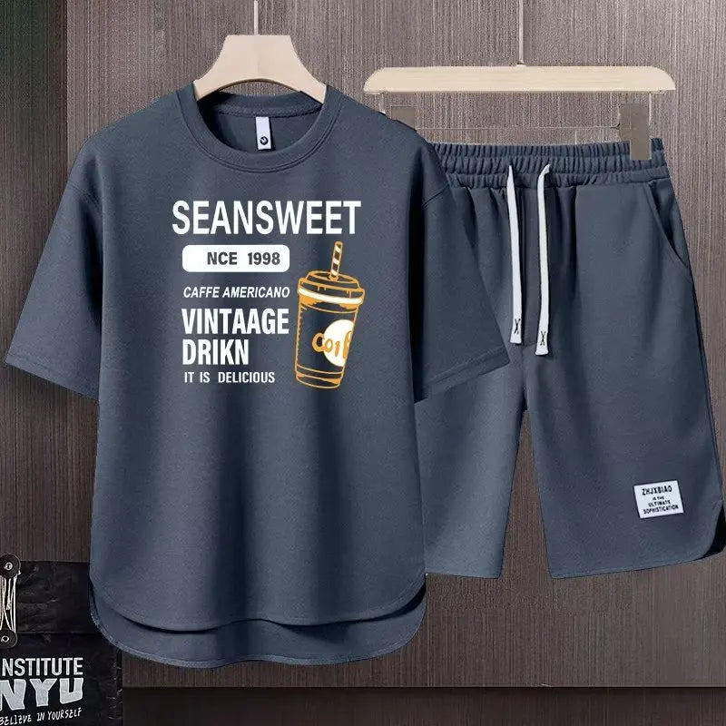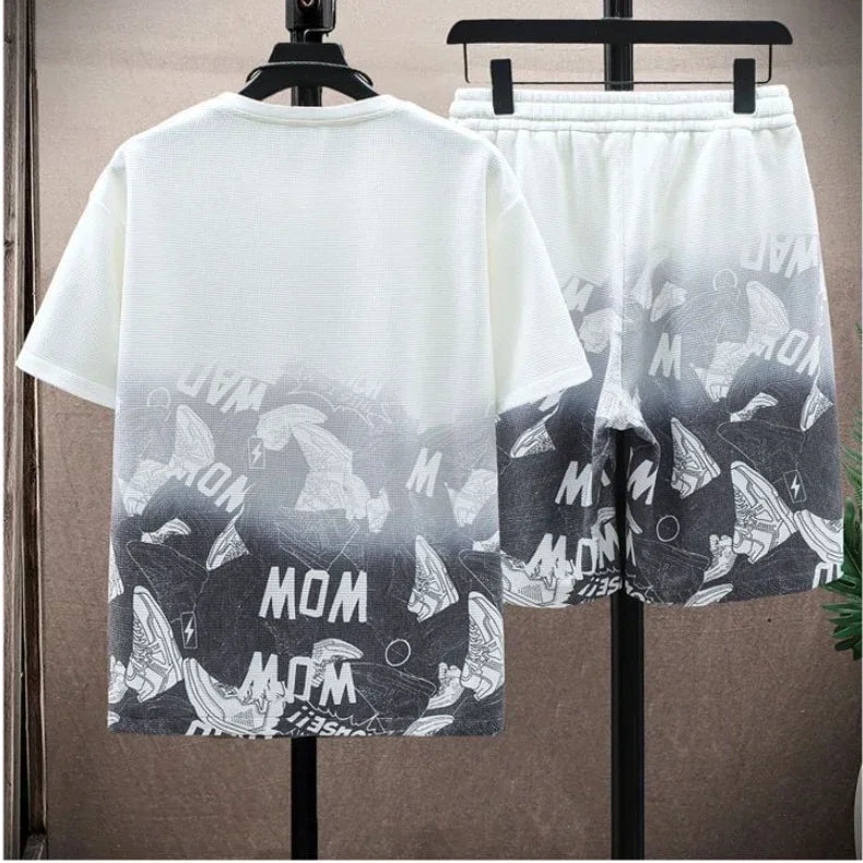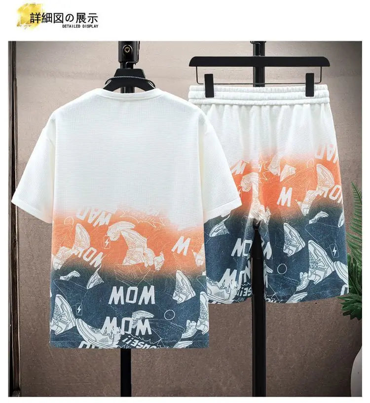 Men Clothing Tracksuit Sets Short Sleeve T Shirts+Shorts Men Sets Korean Fashion Harajuku Tracksuit Men 2 Piece Set