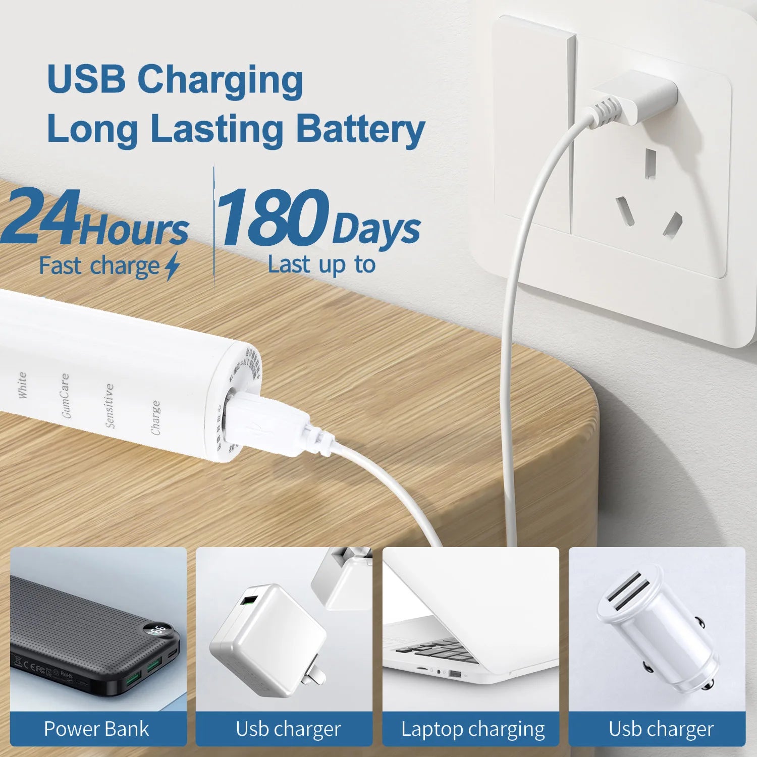 Ultrasonic Electric Toothbrush Rechargeable USB for Adults Sonic