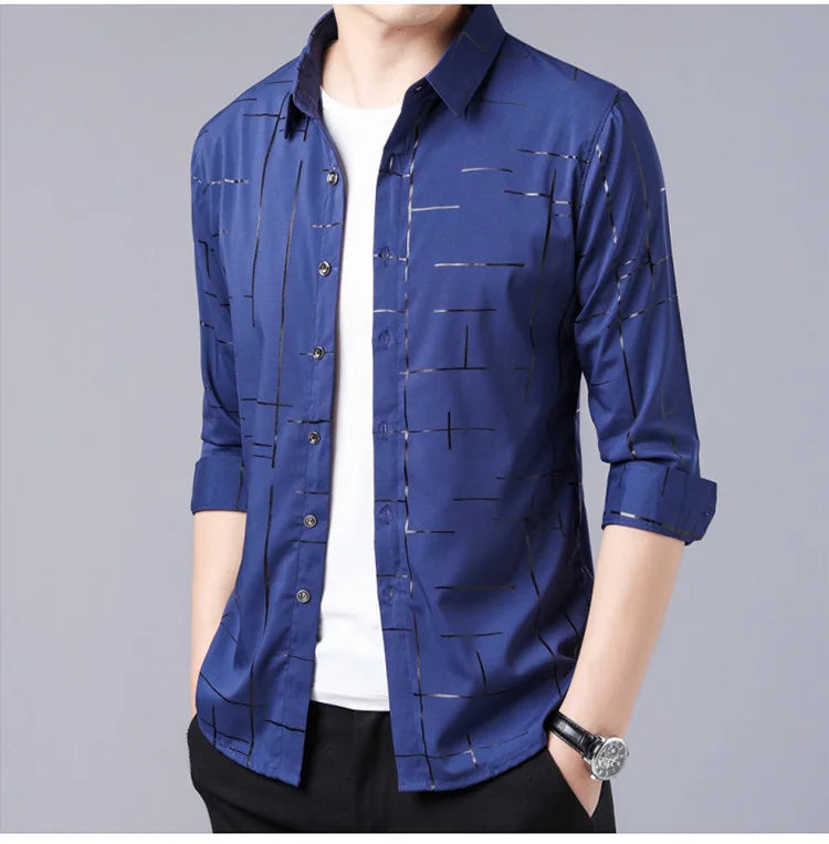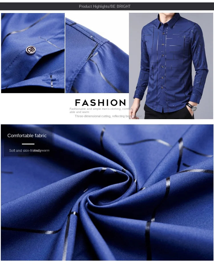 New Fashion Men's Shirt Gold Stamping Printing Long Sleeve Shirt Slim Fit Causal Turn Down Collar Hot SaleSale price Dhs. 89.90Regular price Dhs. 105.99You saved 15% OFF
