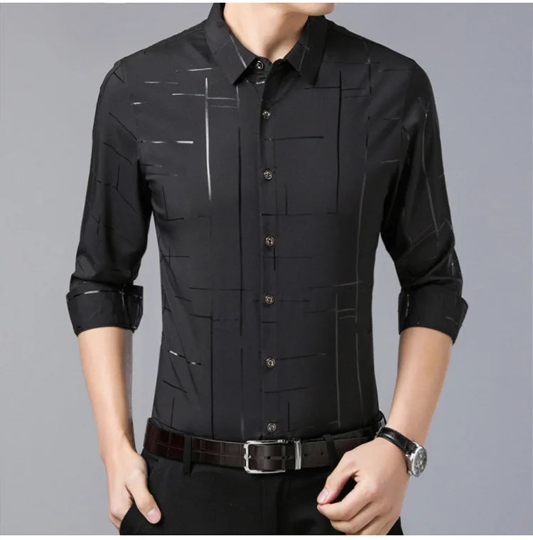 2024 New Dress Shirt Men's High Quality Long Sleeved Slim Fit Business Casual Shirt Flip Collar Stripe Single Breasted DressSale price Dhs. 134.99Regular price Dhs. 188.20You saved 28% OFF