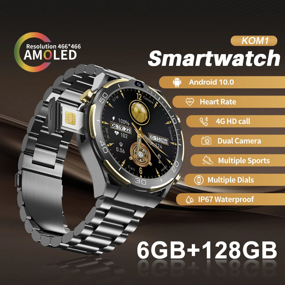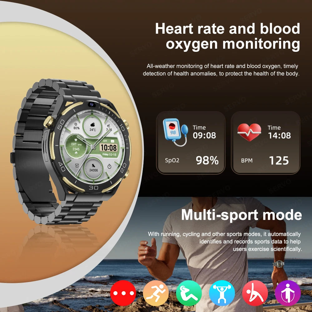 SERVO KOM1 2024 New 4G Call Smart Watch 6GB+128GB 1.508 Inch 5G Wifi GPS Positioning Dual Camera Heart Rate Sport Men Smartwatch