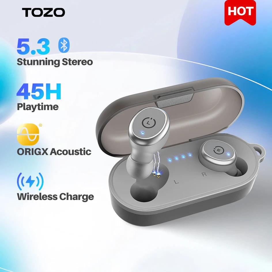TOZO T10 Bluetooth 5.3 Earphones ,Wireless Headphones , AI Enhanced Calling With Deep Bass, IPX8 Waterproof Earbuds ,45H Play