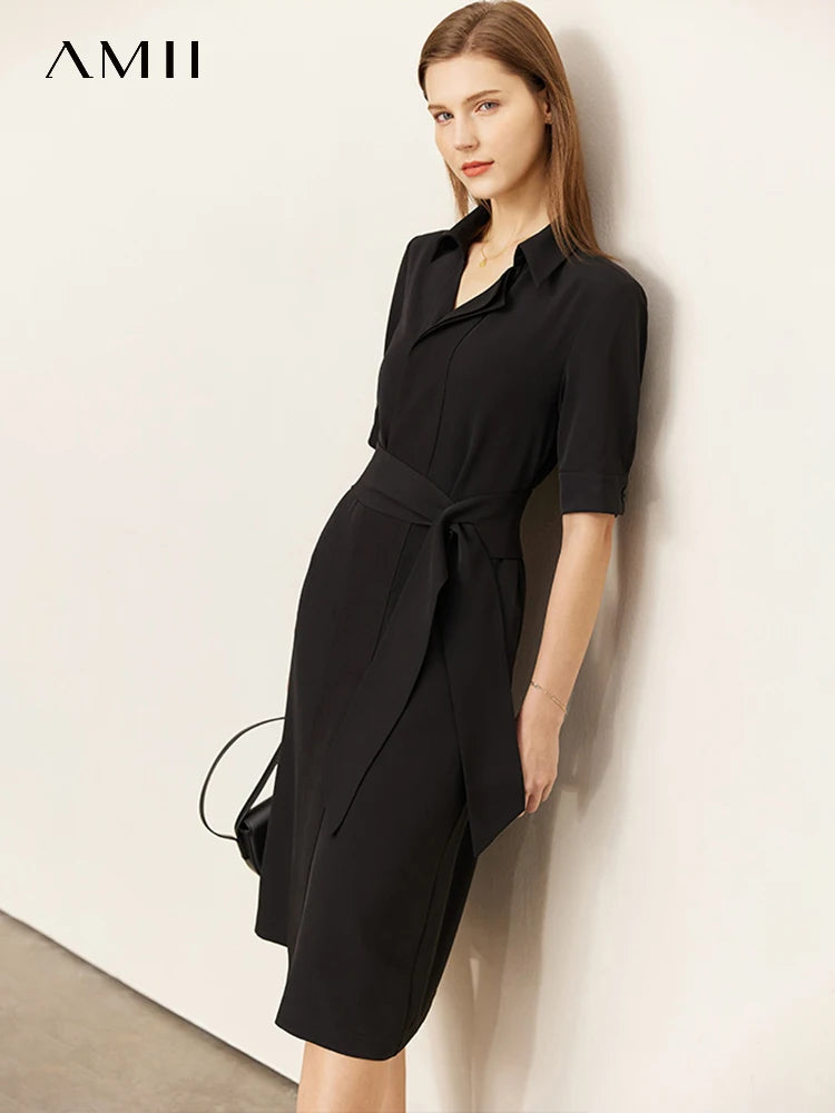AMII Minimalism Dresses for Women 2023 Summer A-Line Elegant V-neck Short Sleeve Elastic Waist Office Female Midi Dress 12342596Sale price Dhs. 343.54Regular price Dhs. 480.96You saved 28% OFF