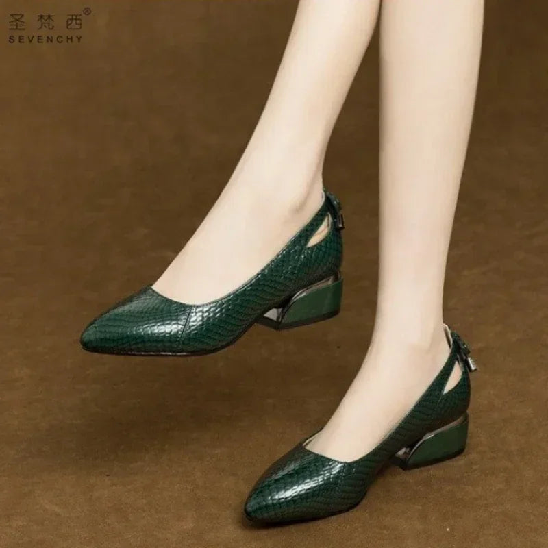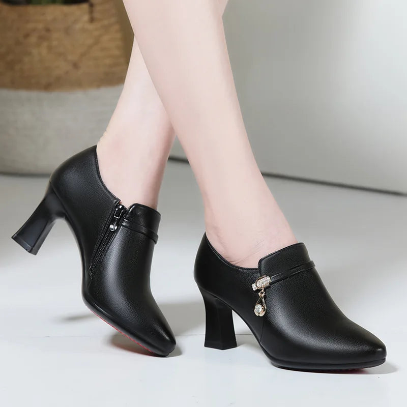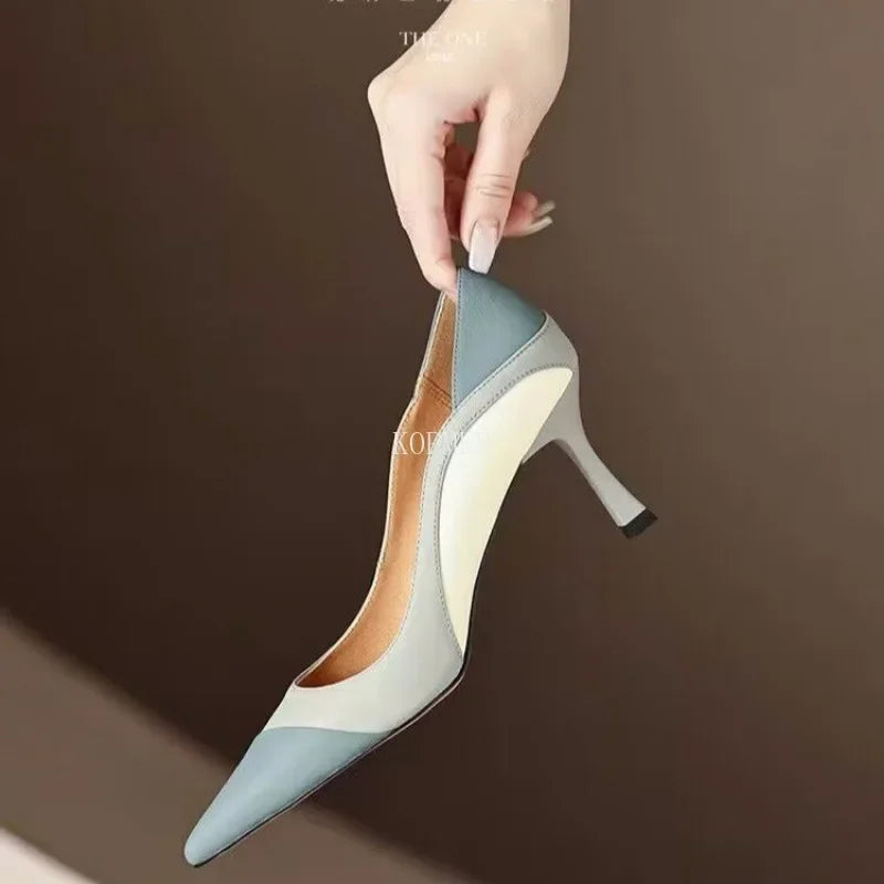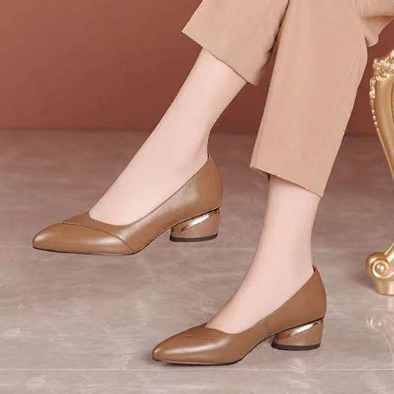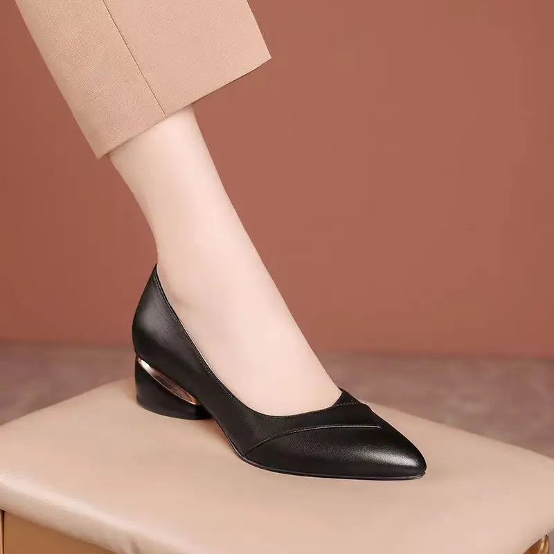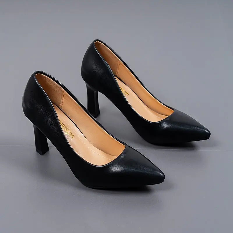 2022 Spring Autumn Season Pointed Shallow Mouth Single Shoes Soft Leather Work Career Retro Versatile High-heeled Women's Shoes