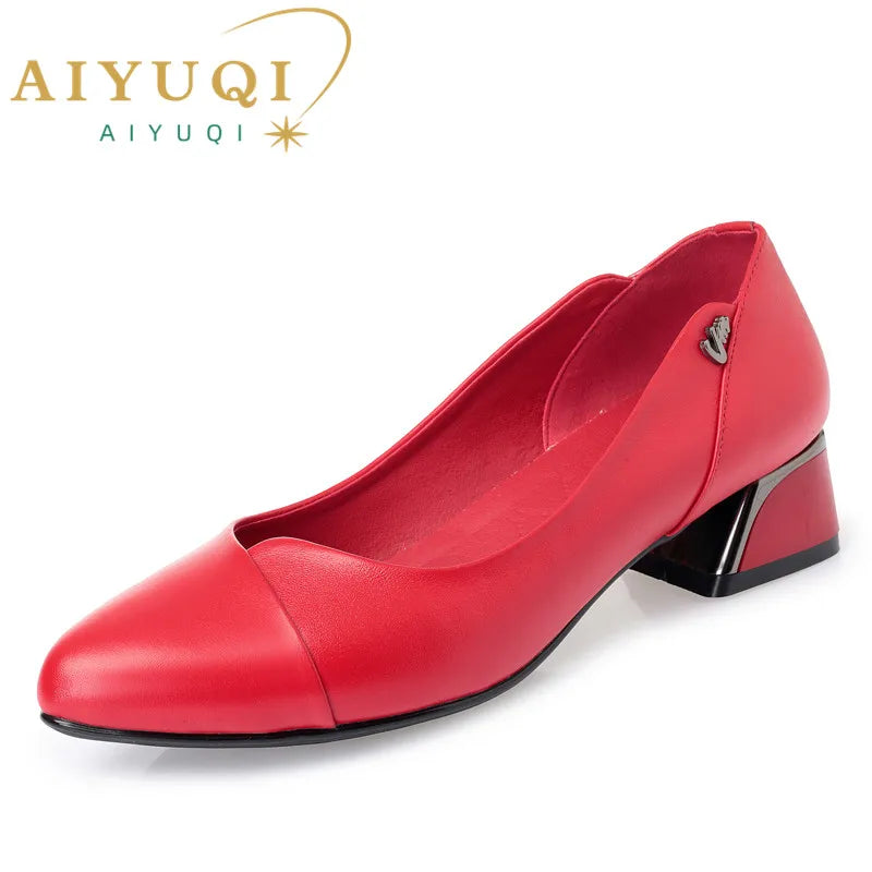 Decrease quantity for AIYUQI women dress shoes 2024 spring new genuine leather women fashion shoes red shallow mouth office shoes women