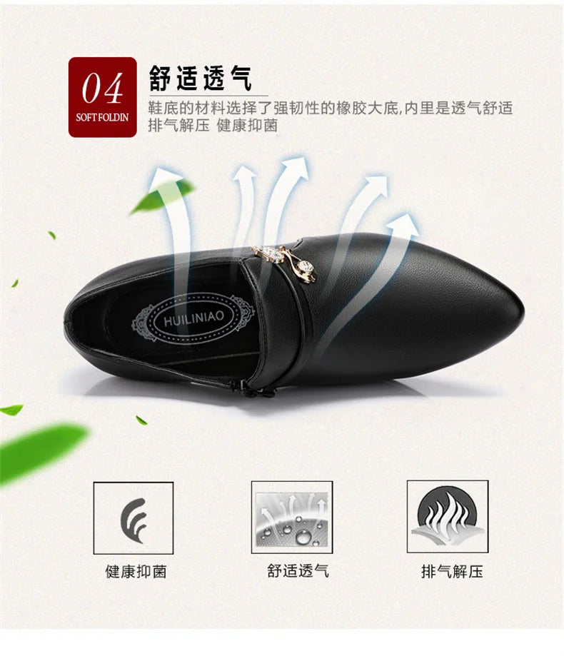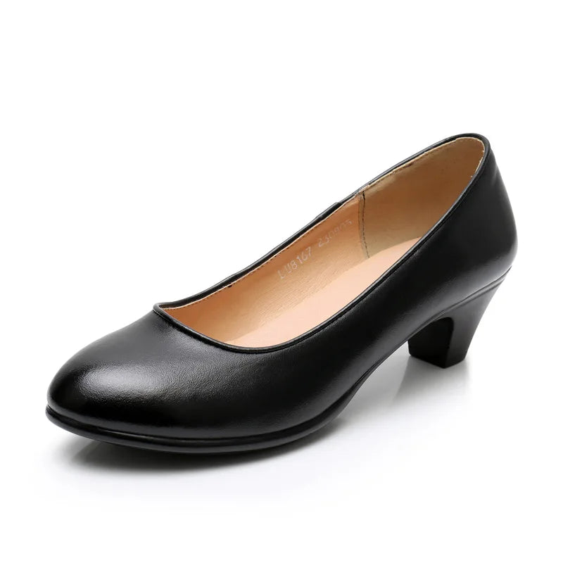 Increase quantity for Genuine Leather shoes Women Round Toe Pumps Sapato feminino High Heels Shallow Fashion Black Work Shoe Plus Size 33-43