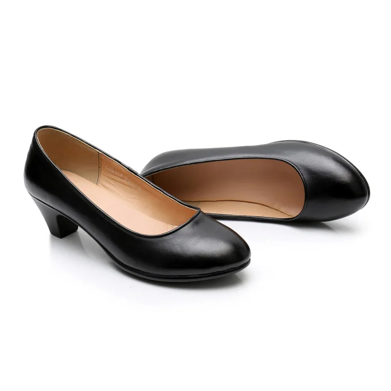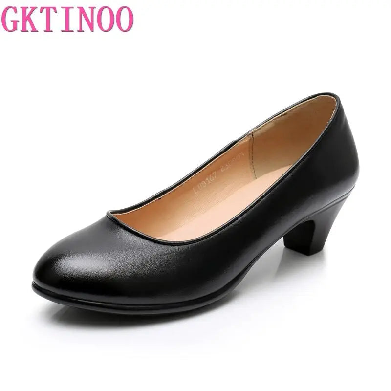 Genuine Leather shoes Women Round Toe Pumps Sapato feminino High Heels Shallow Fashion Black Work Shoe Plus Size 33-43