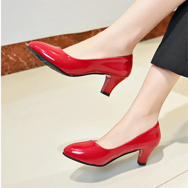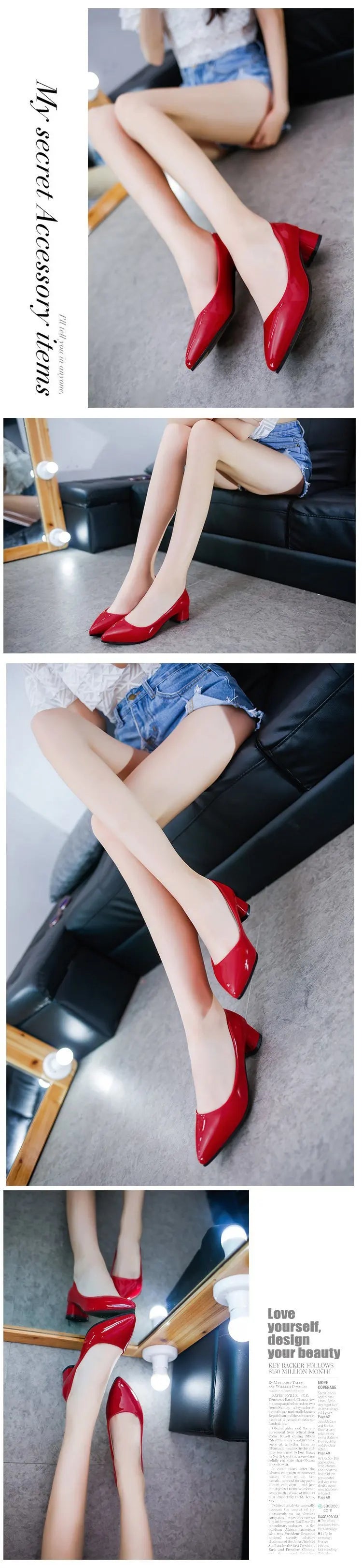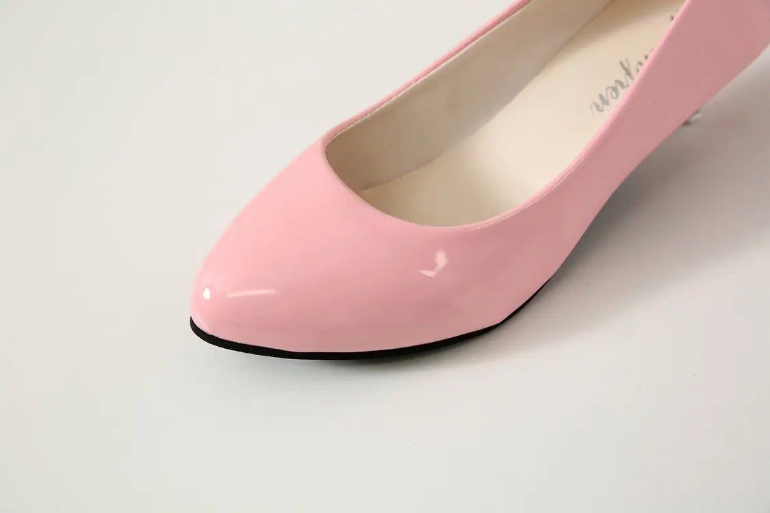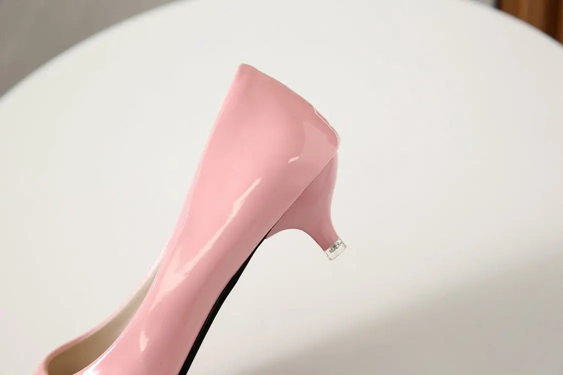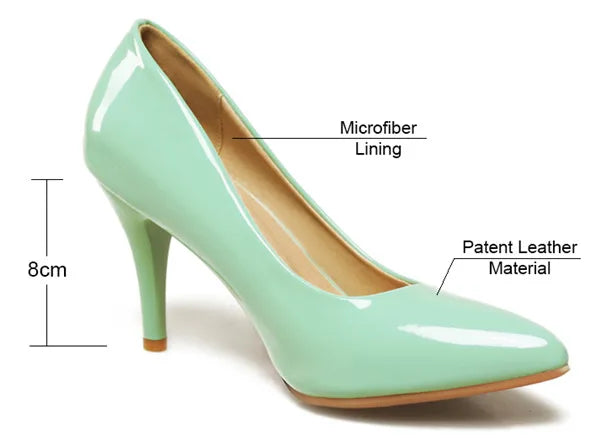 Fashion Office Work Pumps Women Shoes Elegant Heeled Women Stiletto Party Pointed Toe Pu Patent Leather Thin Heels Shoes