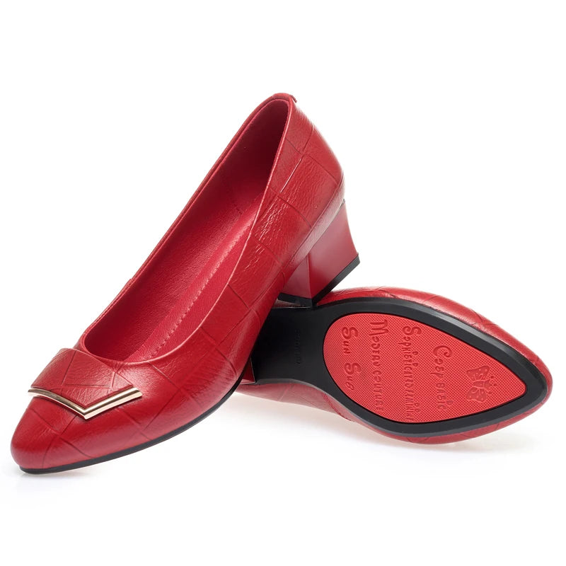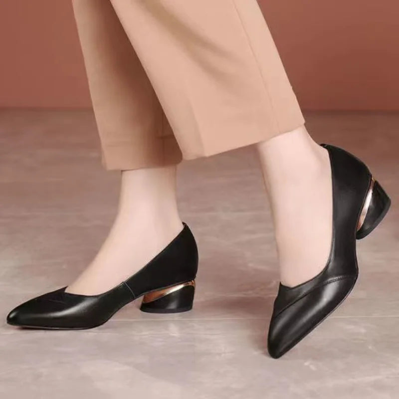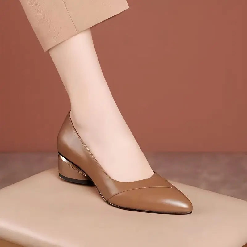 Decrease quantity for Office Formal Pointed Toe Normal Leather Casual with Medium Heels Shoes for Women 2024 Ladies Summer Footwear on Sale Non Slip