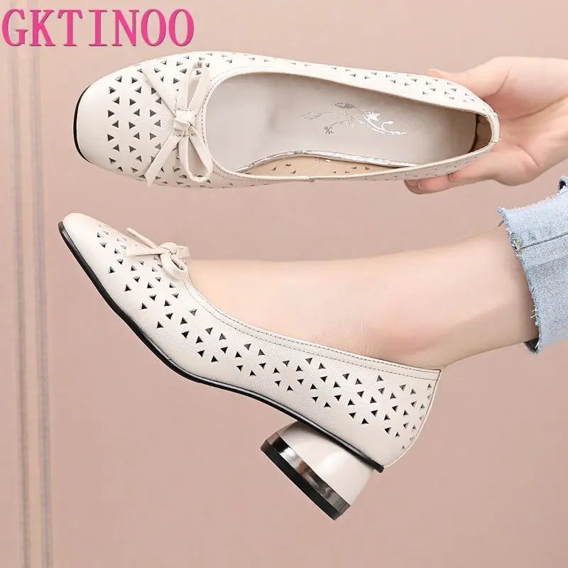 Increase quantity for Office Formal Pointed Toe Normal Leather Casual with Medium Heels Shoes for Women 2024 Ladies Summer Footwear on Sale Non Slip