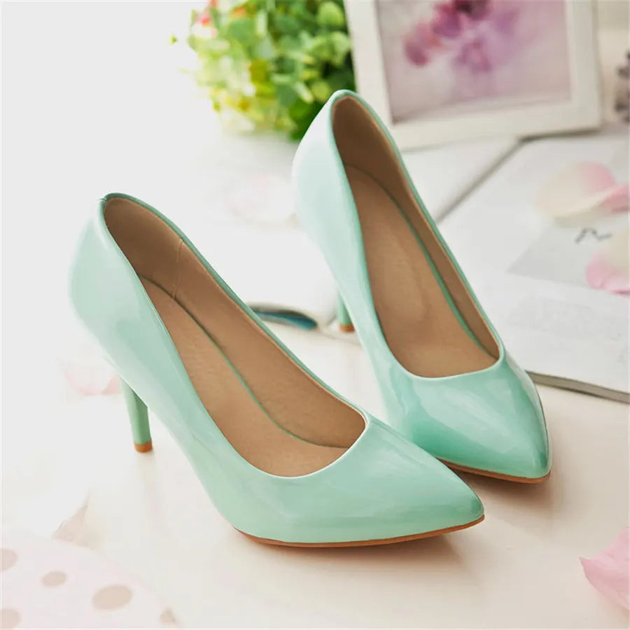 Decrease quantity for Spring Women Pumps Red Green Patent Leather 8cm High Spike Heels Wedding Party Office Pointed Toe Slip-on Ladies Thin Stilettos