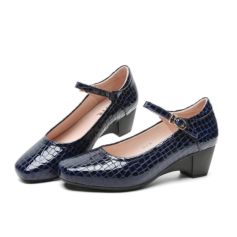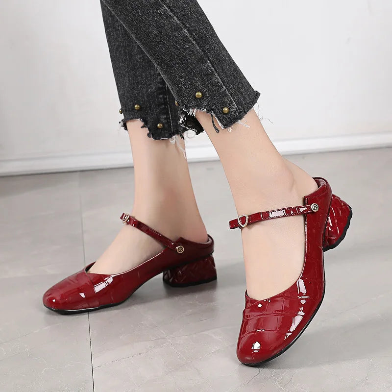 Plaid Slip-on Patent Leather Black Medium Heels Ladies Lolita Mary Jane Shoes Comfortable Women's Shoe Pumps Moccasin Woman Boat