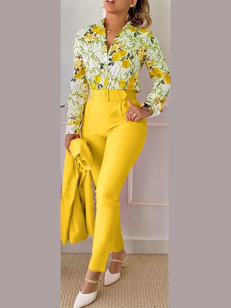 High Waist Sleeveless Crop Top and Skinny Flare Pants Set with Belt - Women's Fashion Two Piece SuitRegular price Dhs. 140.74