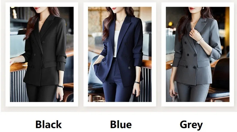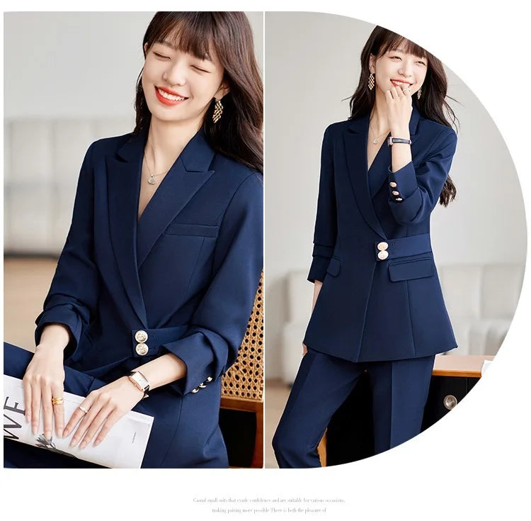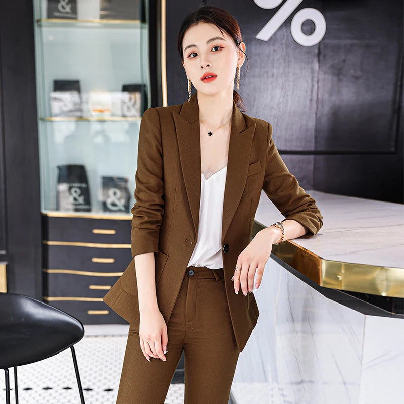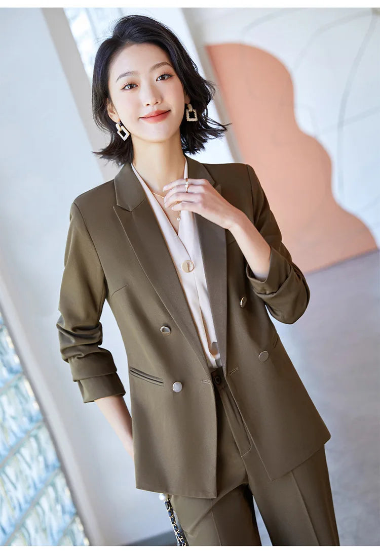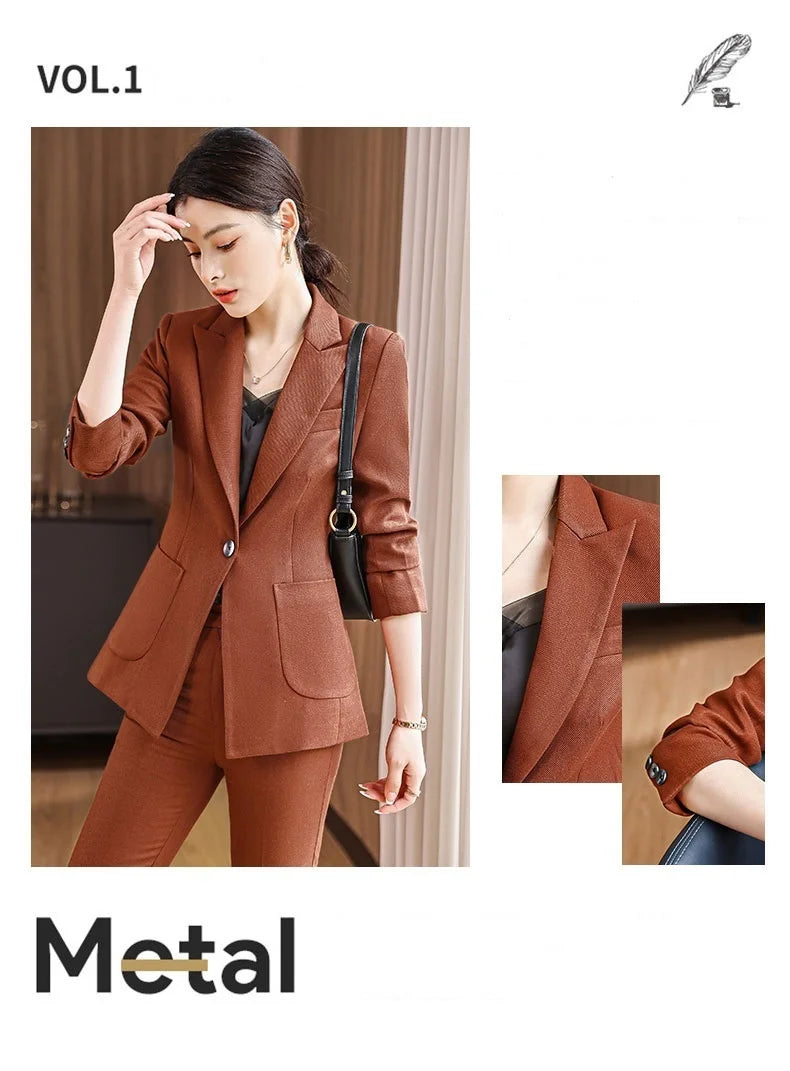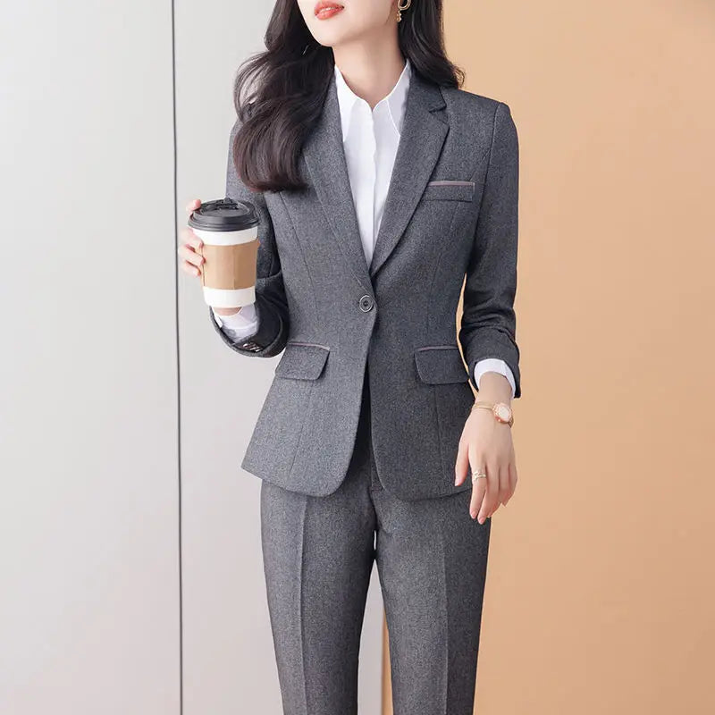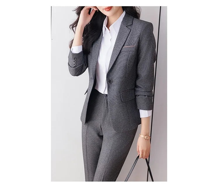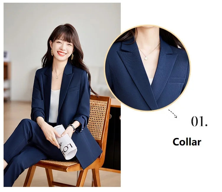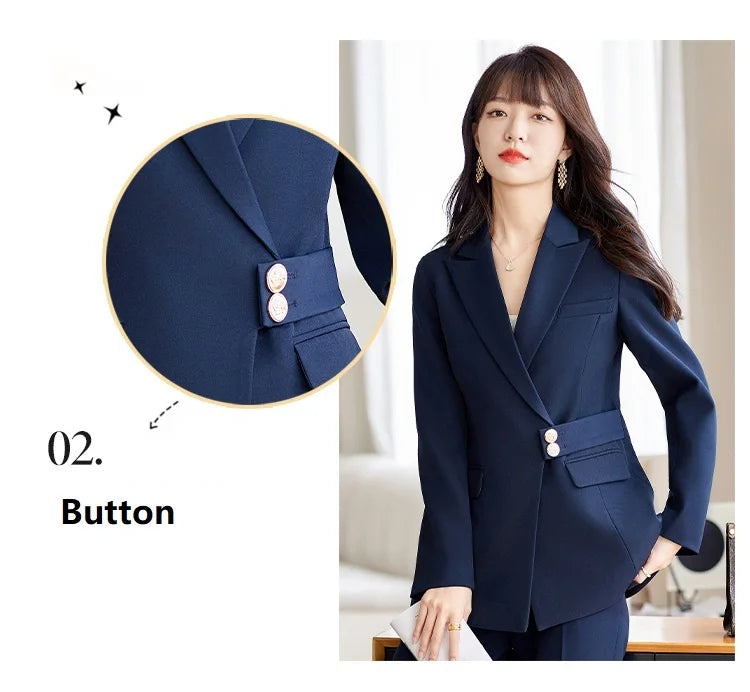 Formal Pantsuits with Pants and Jackets Coat Uniform Styles Professional Autumn Winter Career Interview Trousers Set Blazers