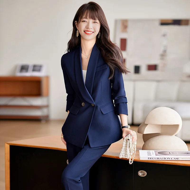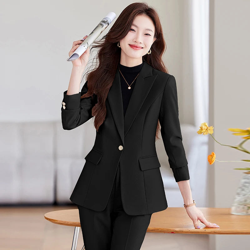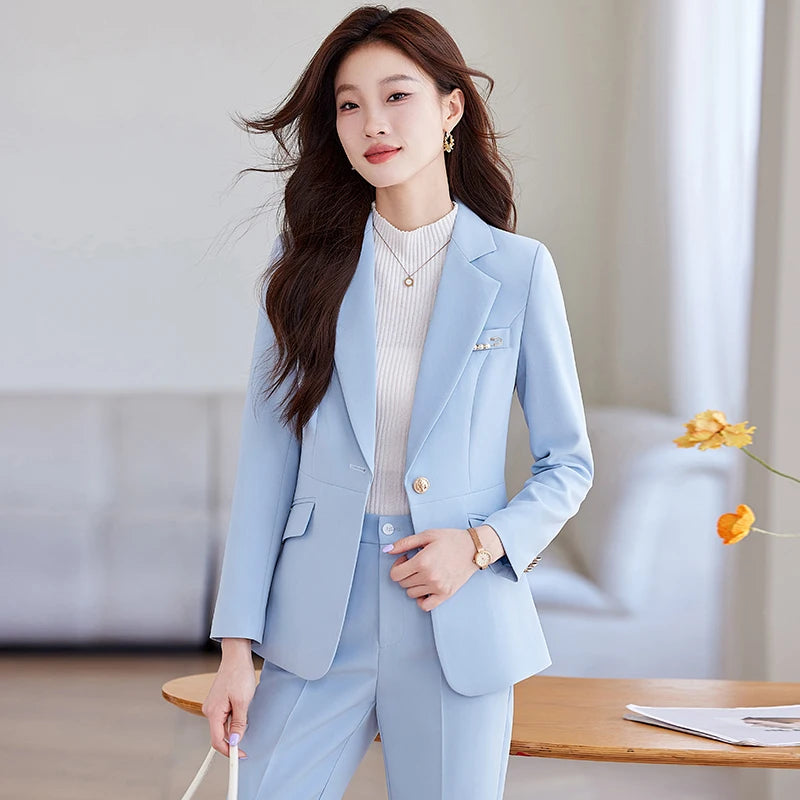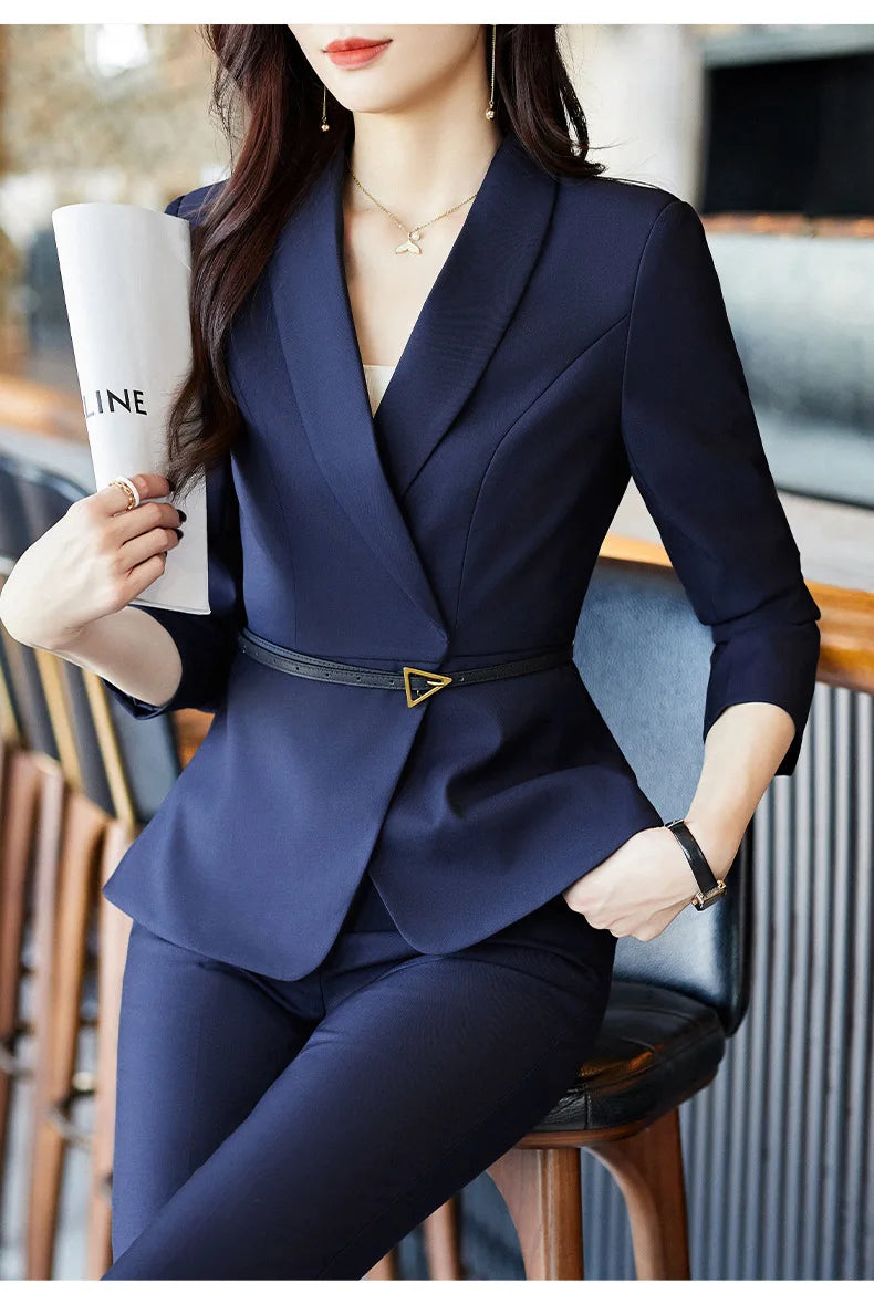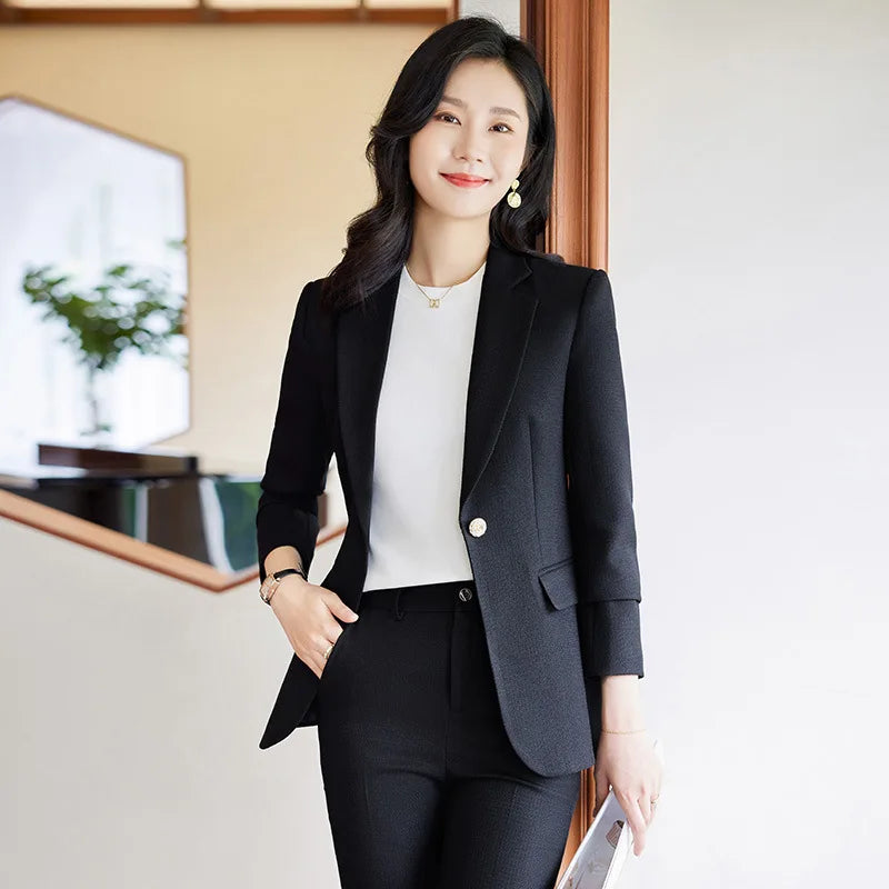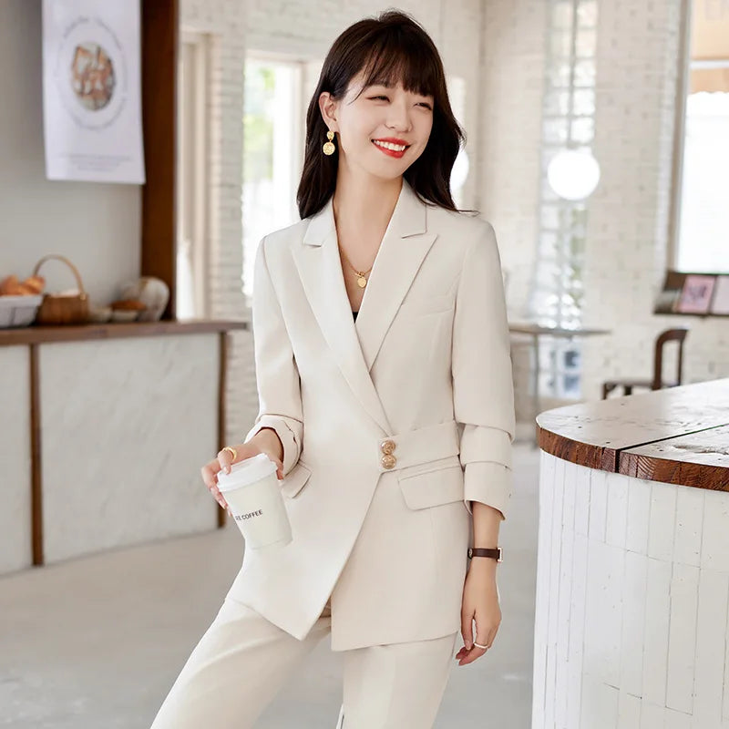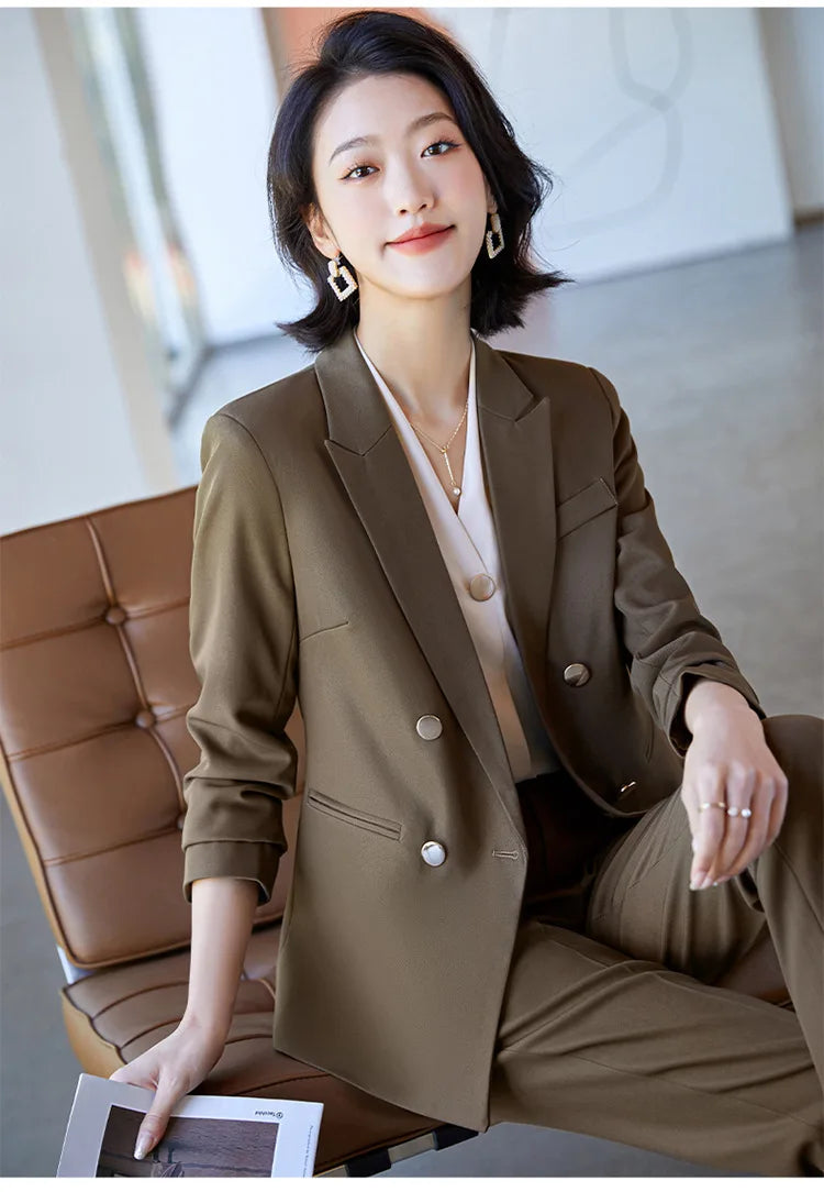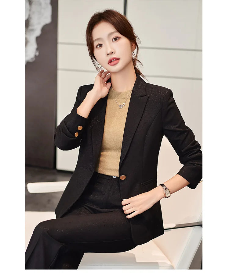 Formal Pantsuits with Pants and Jackets Coat Uniform Styles Professional Autumn Winter Career Interview Trousers Set Blazers