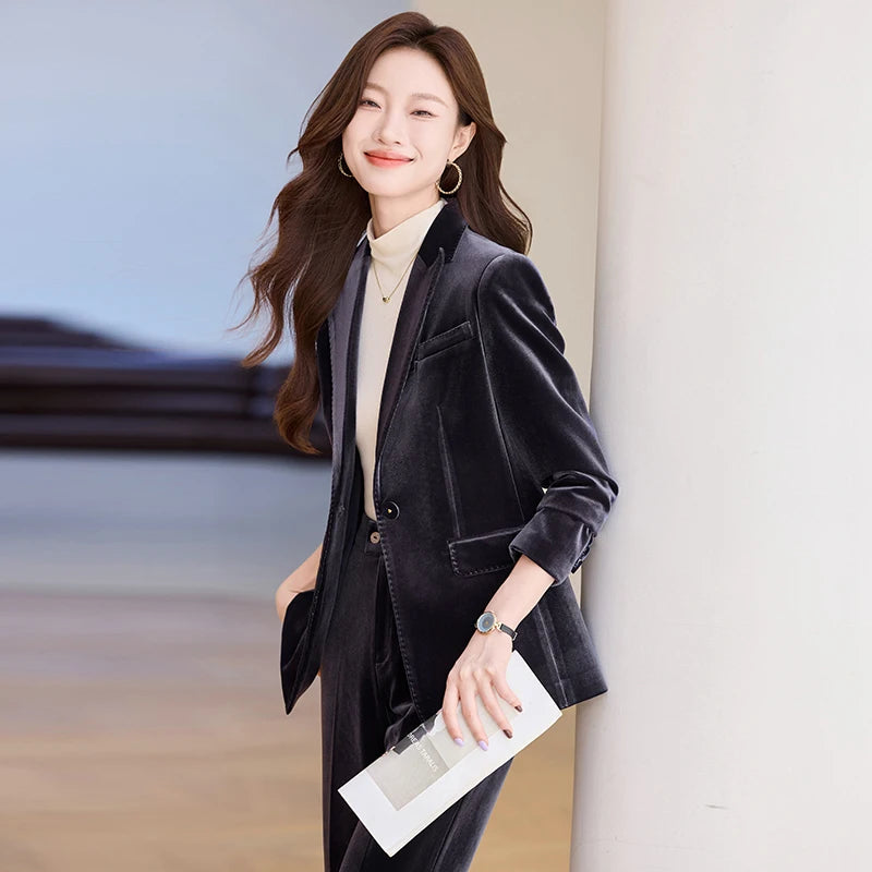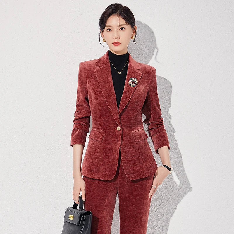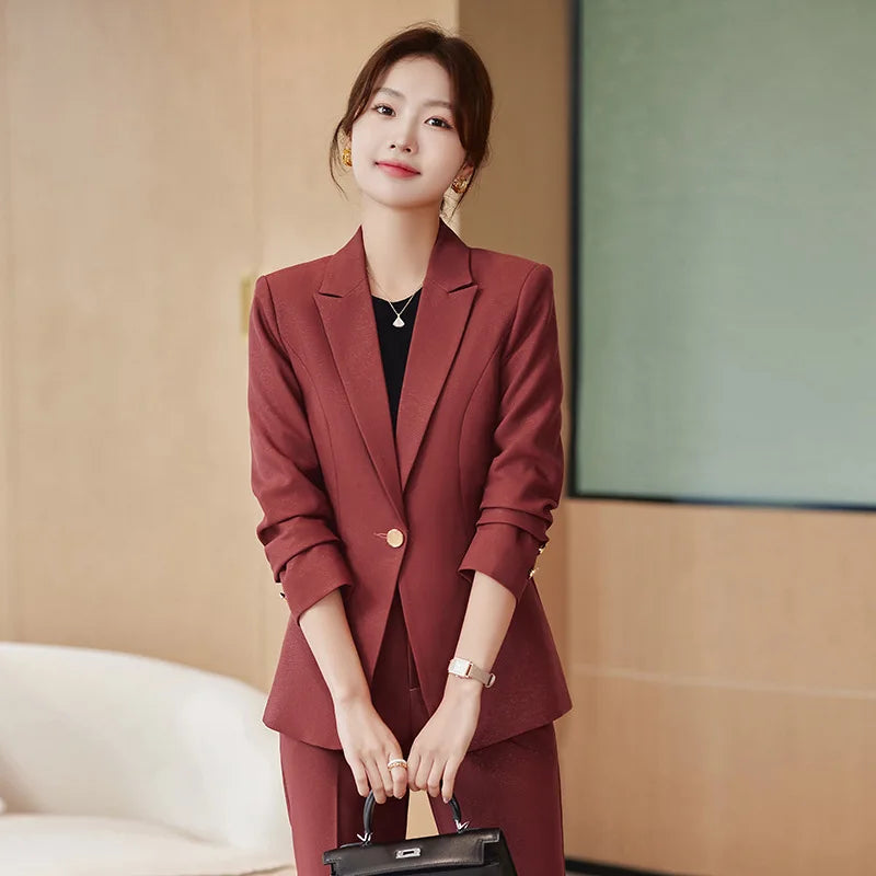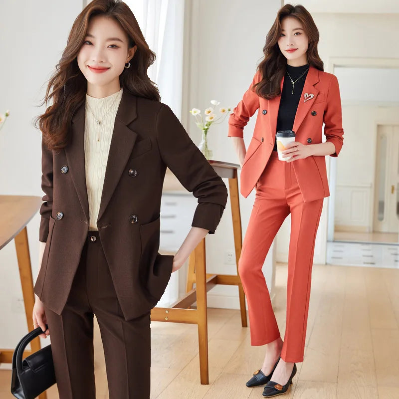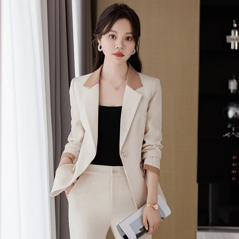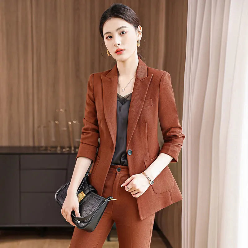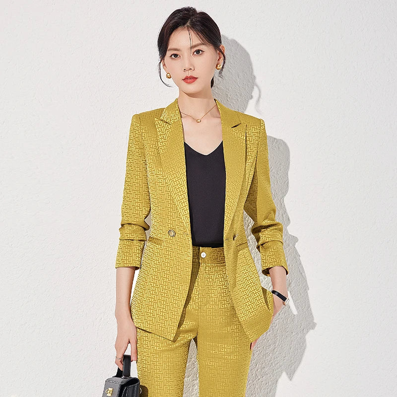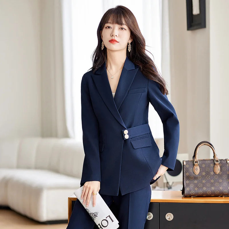 Formal Pantsuits with Pants and Jackets Coat Uniform Styles Professional Autumn Winter Career Interview Trousers Set Blazers