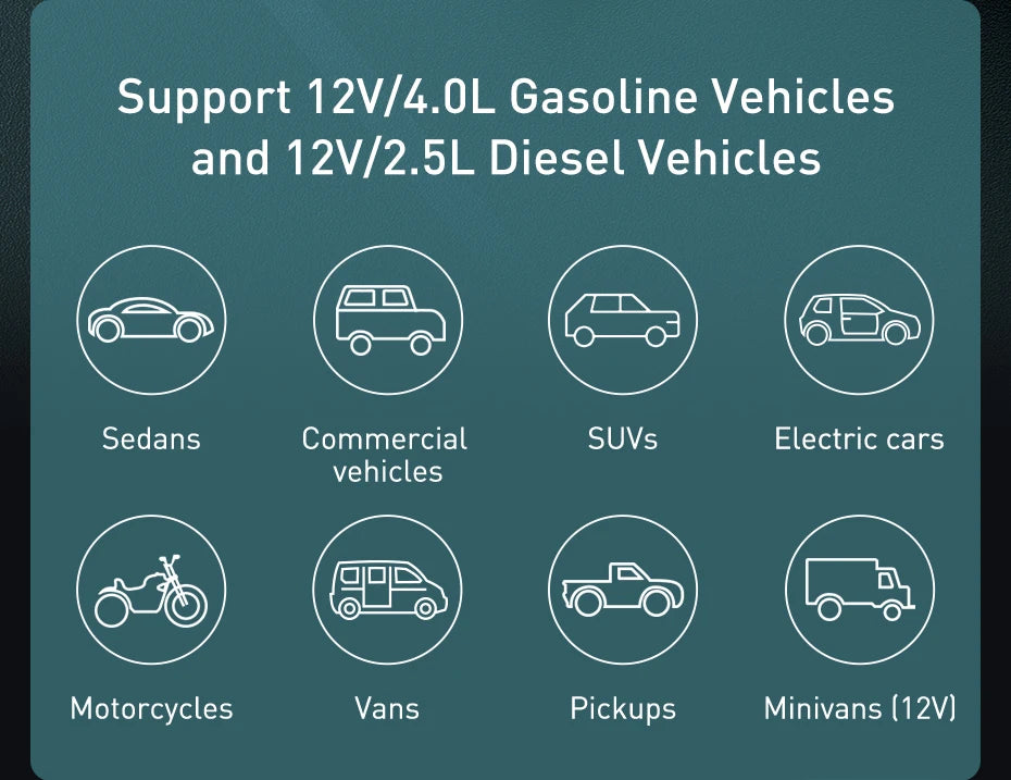 Suitable models 1: 12V Petrol cars with displacement of below 4.0L