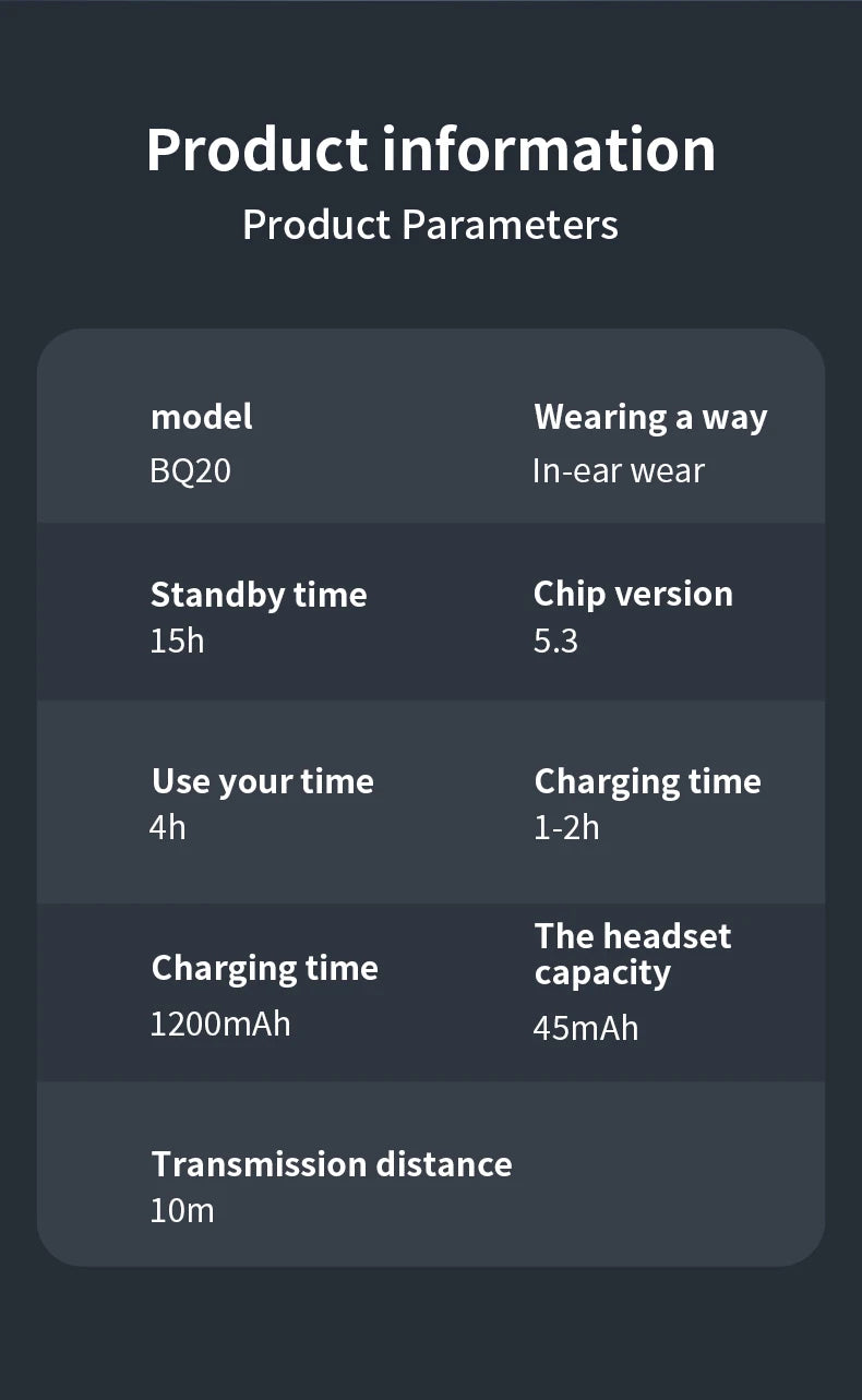 TWS: BQ20 Bluetooth Earphones Headphones Wireless Headset Earbuds