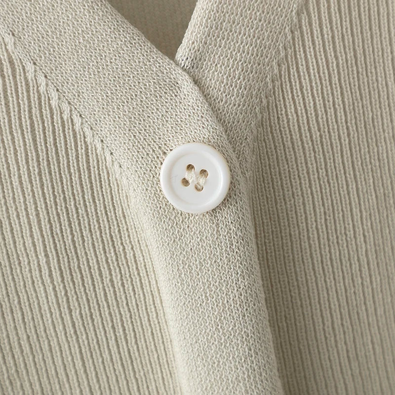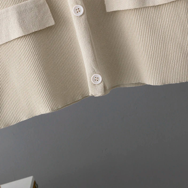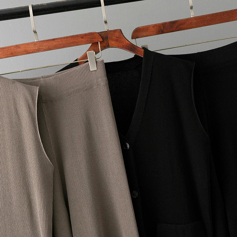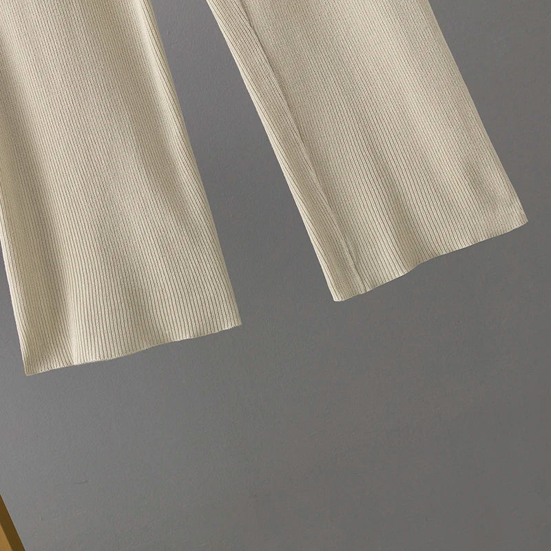 Elegant Tracksuit Suit Women O Neck Breasted Contrast Color Short-sleeved Tops with High Waist Wide Leg Knit Pants Two-piece Set