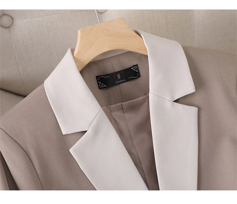 New Spring Autumn Color Block Women Slim Blazer Long Sleeve Single Button Office Ladies Business Work Wear Formal Jacket Coat