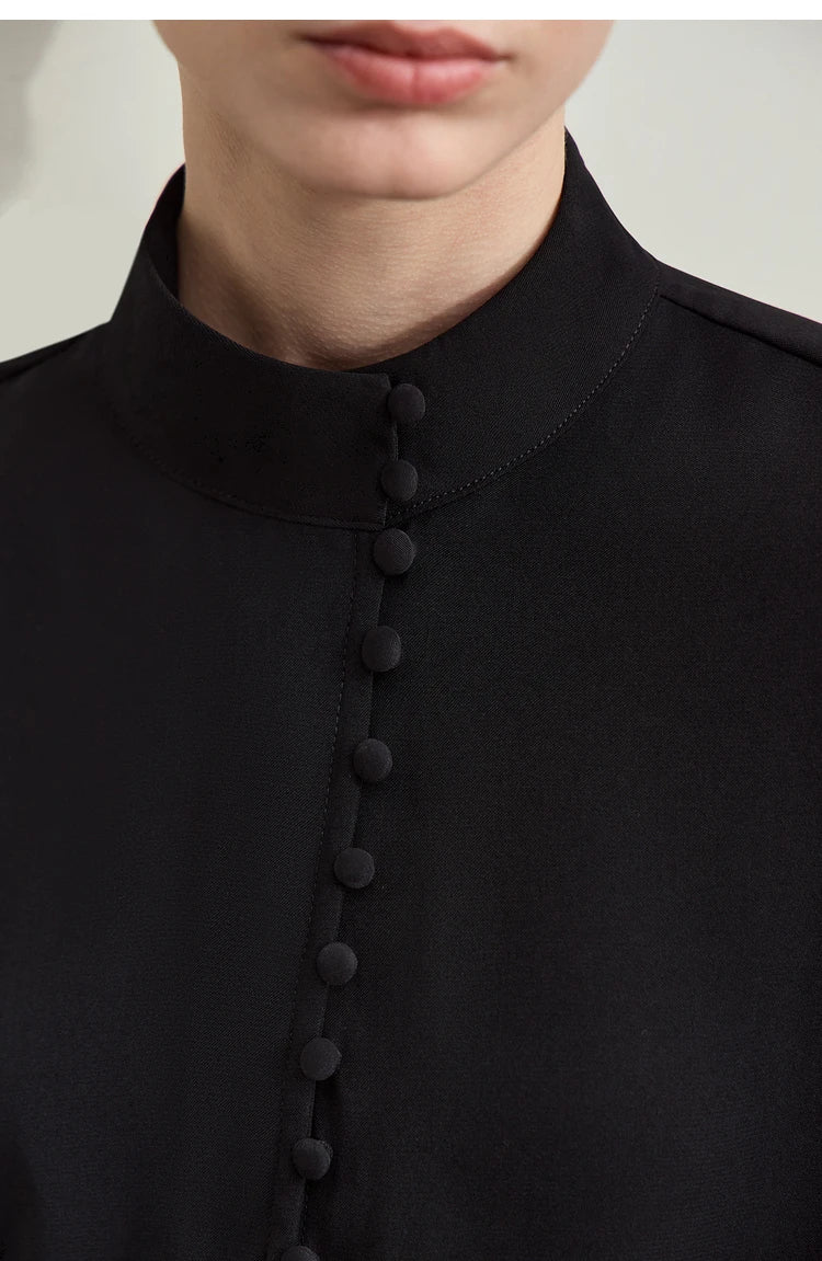 Amii Minimalism 2024 Women Blouse Autumn New Retro Fashion Stand Collar Casual Basic Chiffon Shirt Long Sleeve Top Lady 12443185