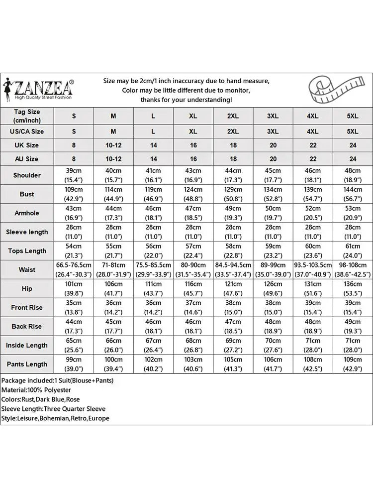 ZANZEA Summer Trousers Suits Casual Printed Tracksuits 2PCS Vintage 3/4 Sleeve Blouse Pant Sets Women Bohemian Matching Sets